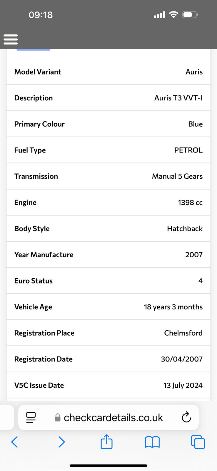 2007 Toyota Auris | 1.4L Petrol | Blue | Taxed | Clean & Reliable